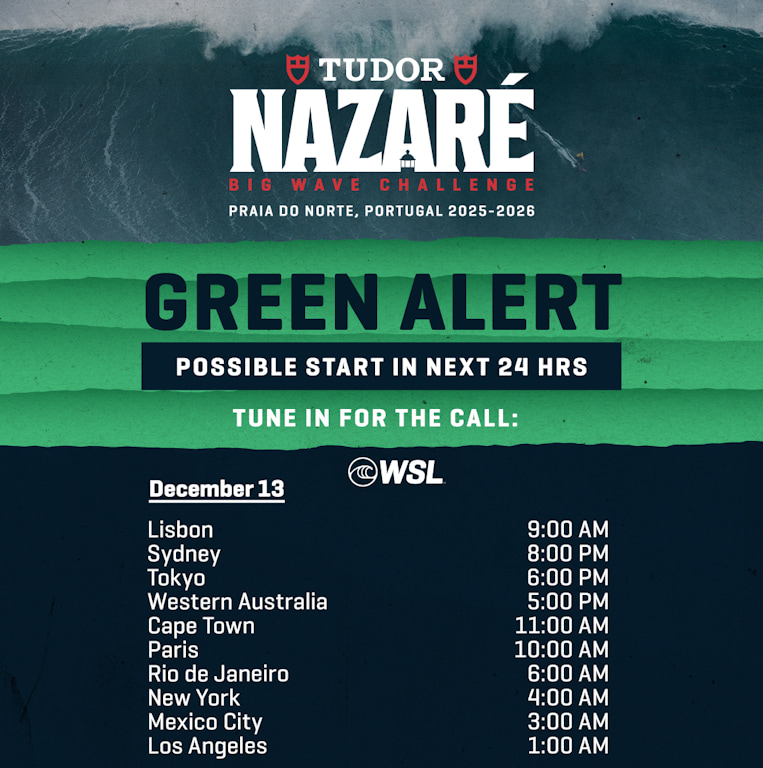 12/Dez/2025: Alerta Verde para a realização da competição de surf de ondas grandes Tudor Nazaré Big Wave Challenge.